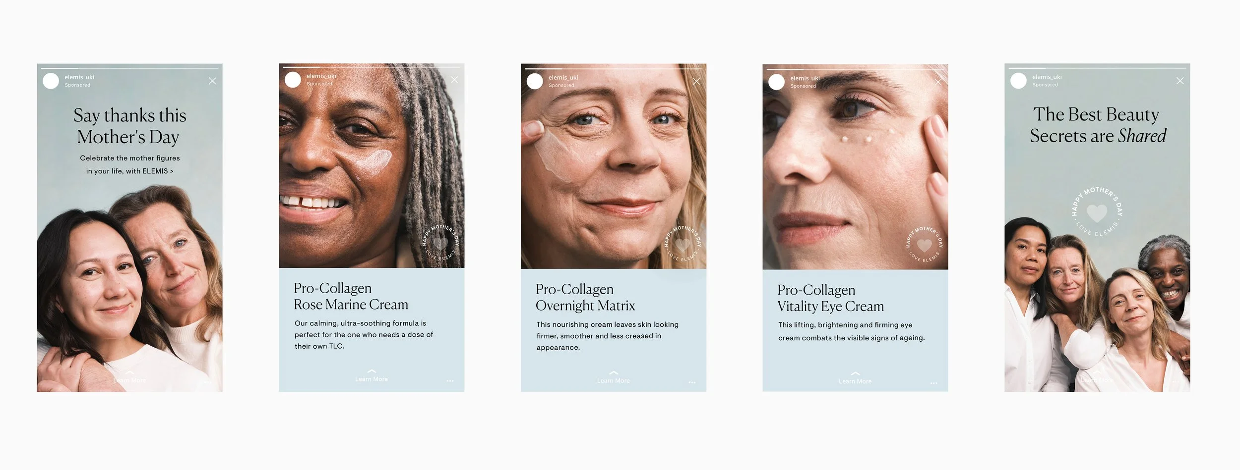 Art direction for Elemis’ Mother’s Day campaign cast internally from employees and their mother figures.