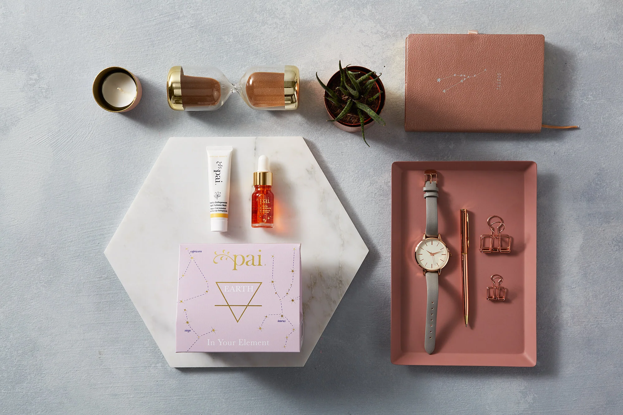 I also worked on art direction for the campaign photoshoot, sourcing props to give personality to each set & mood-boarding appropriate lighting, composition & tone. We wanted the imagery to convey the characteristics of each sign, for example air signs are notably intellectual and curious so these images included an array of books and maps.